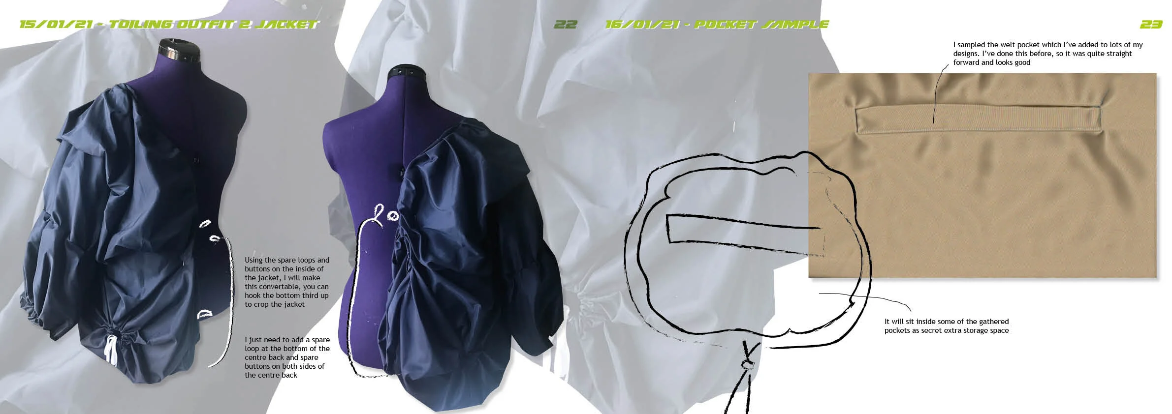 This collection aims to reimagine the future of luxury fashion by identifying the changes needed to modernise the industry for the current world. I am looking to create a high-end collection which is sustainably made and designed to be handed down through generations by exploring modular design, reversibility and innovative tailoring. The fabrics used will be low impact and/or upcycled and innovative fastening techniques will ensure easy replacement or repair.