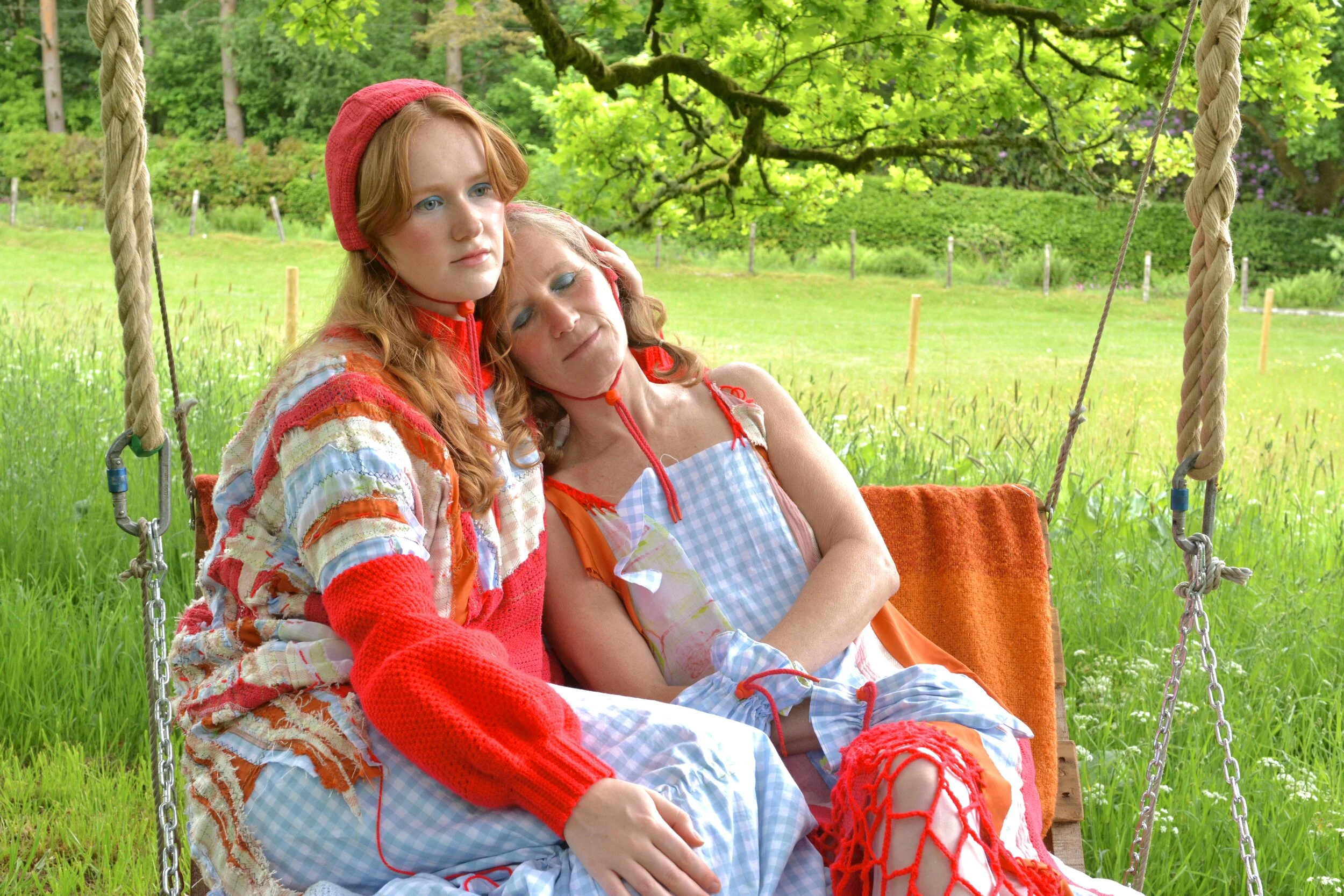 For the shoot, I wanted to base the concept around the ideas of heritage and family, so chose to use my Mum and me as models and my Step-Dad (who happens to be a trained photographer) behind the lens. We shot in the garden of their smallholding in Langholm, the town where my Mum’s family has its historic roots and where she now lives.