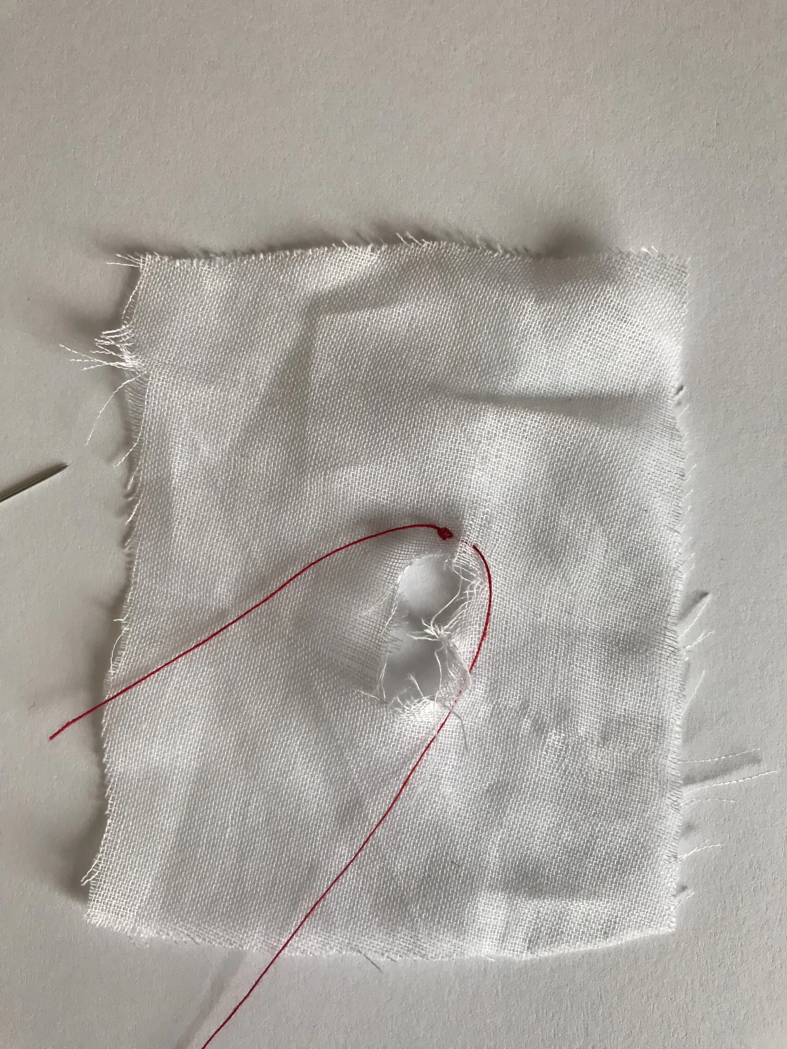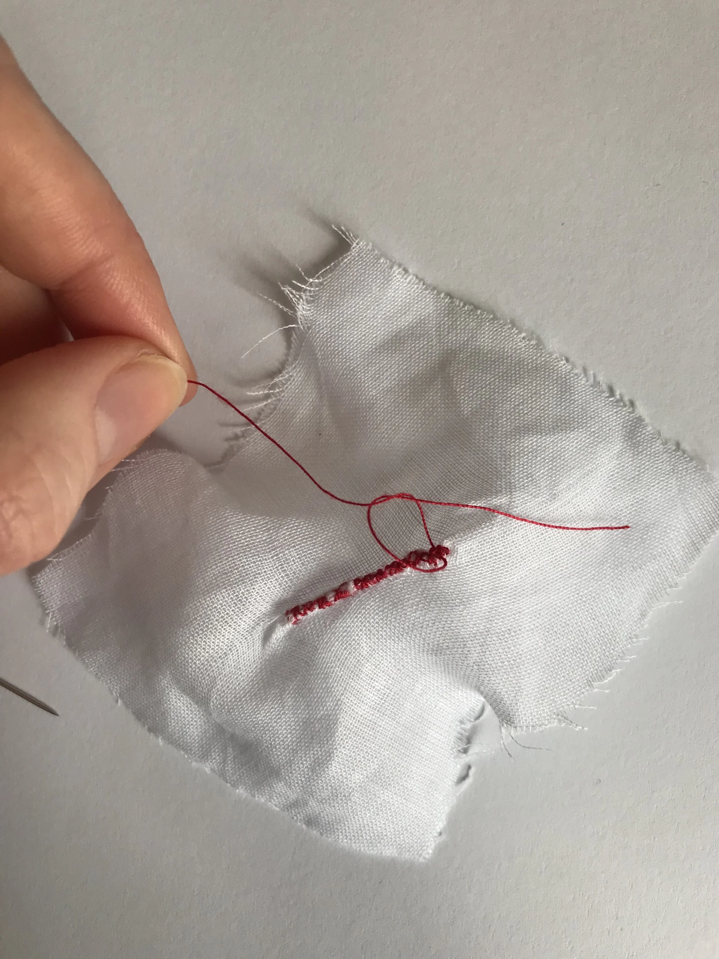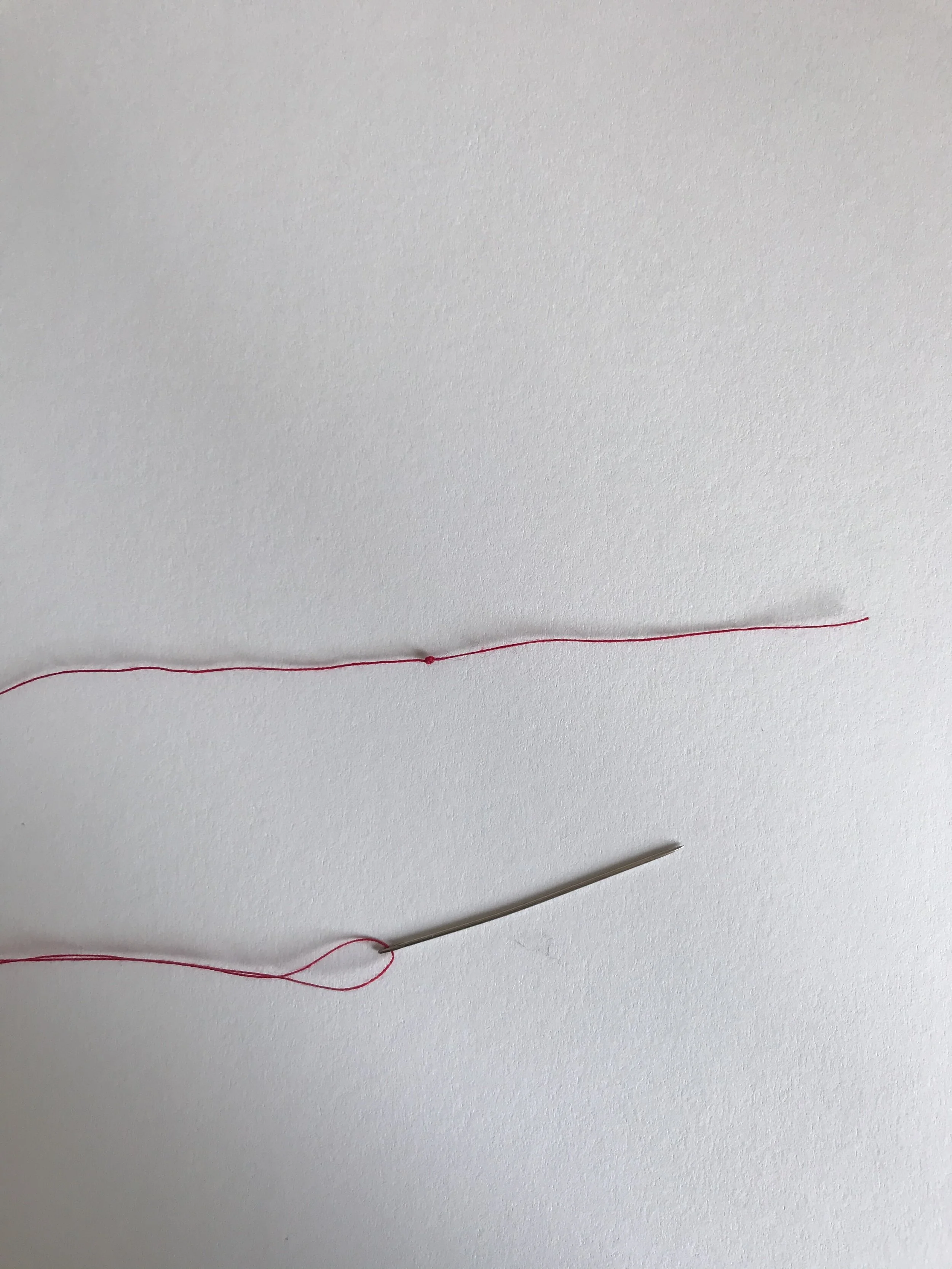 Thread your needle using a contrasting thread or a more subtle matching colour and tie a knot a few centimetres from the end.