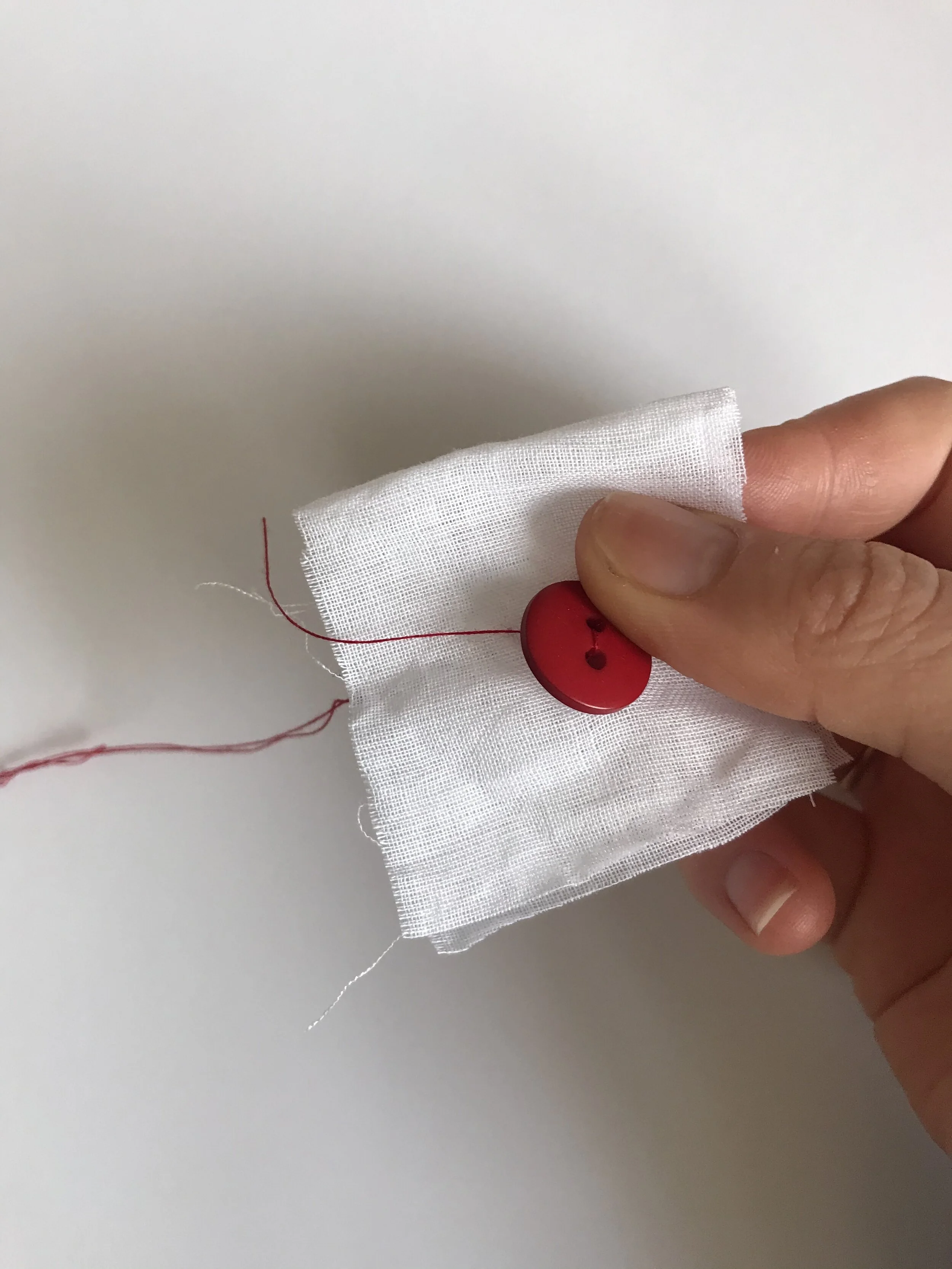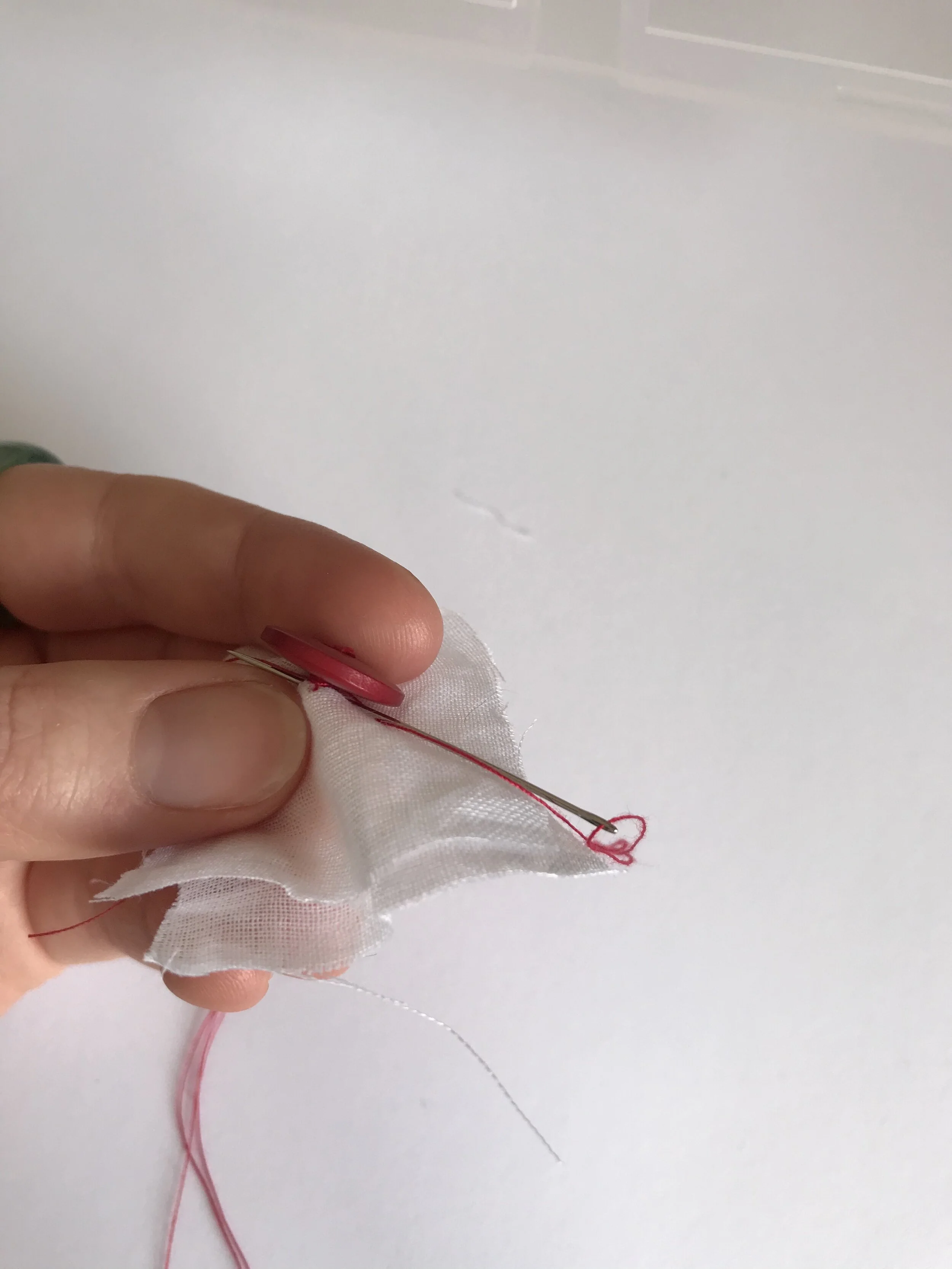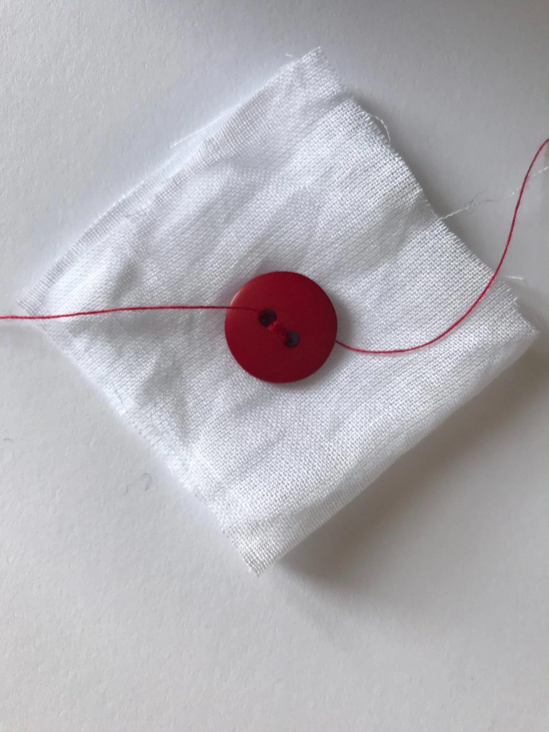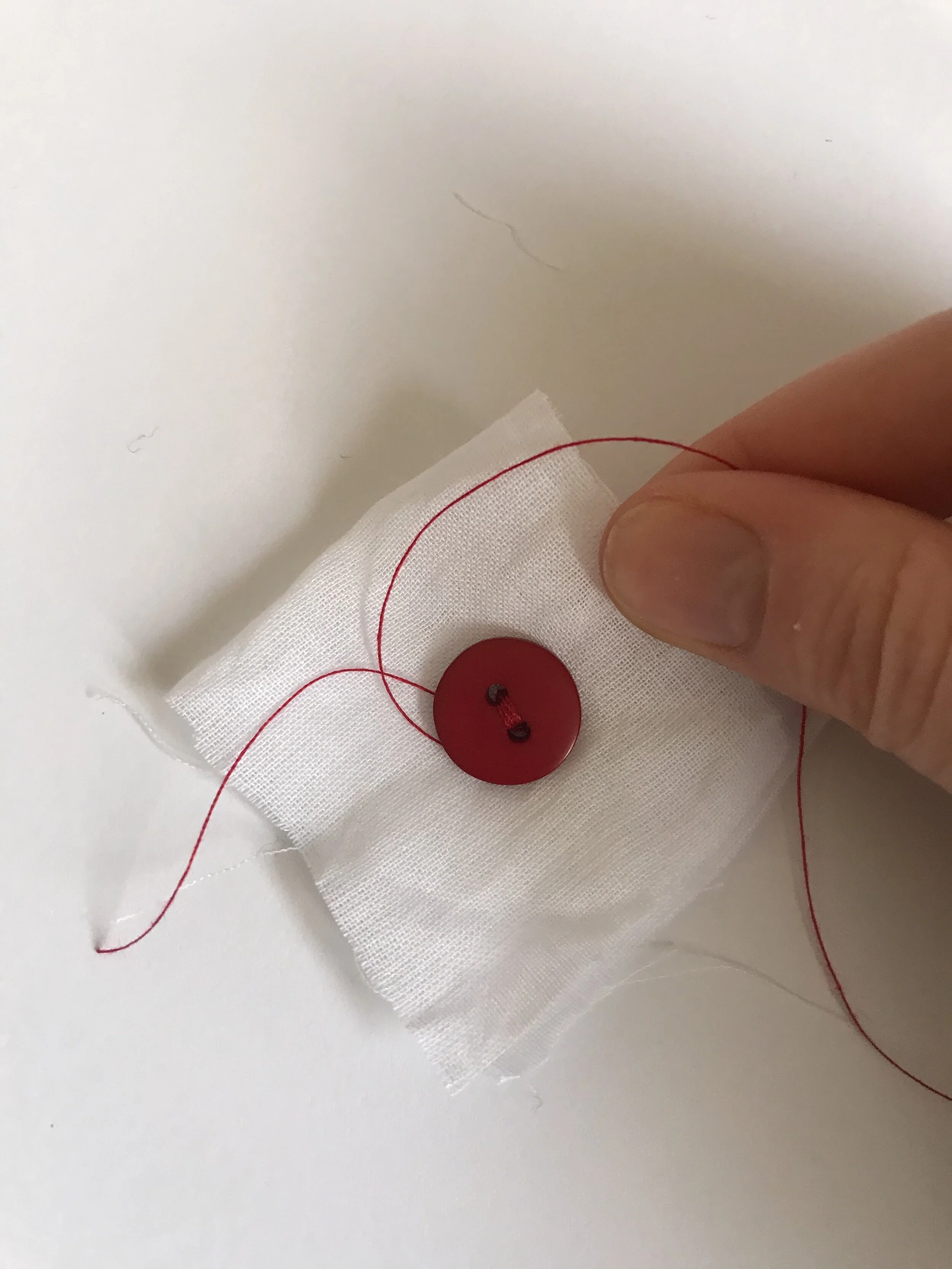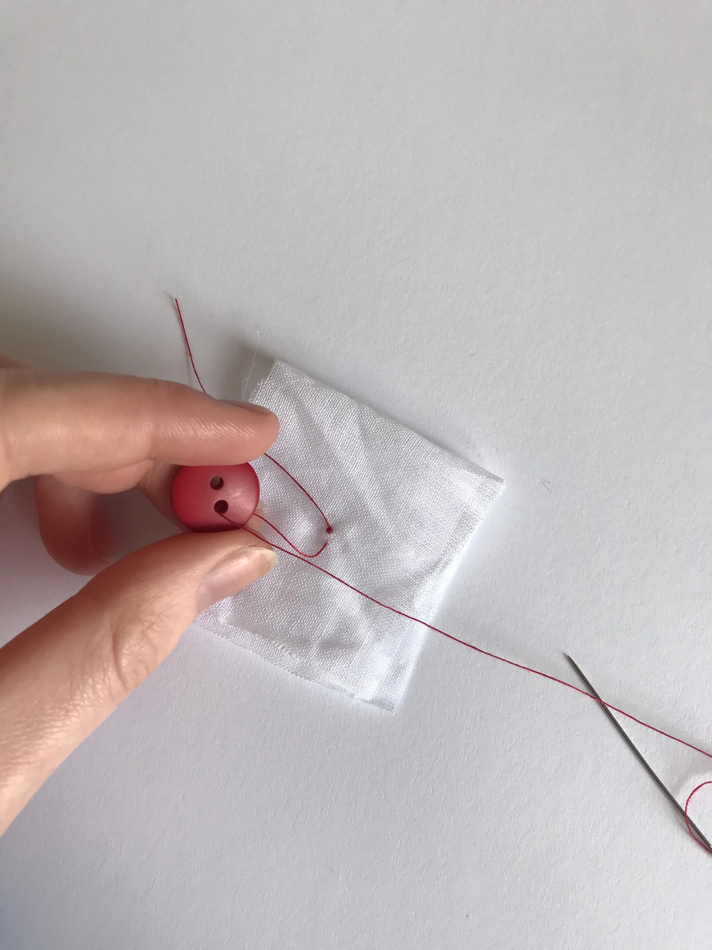 Grab your button and thread through both holes so that it sits flat against the fabric.