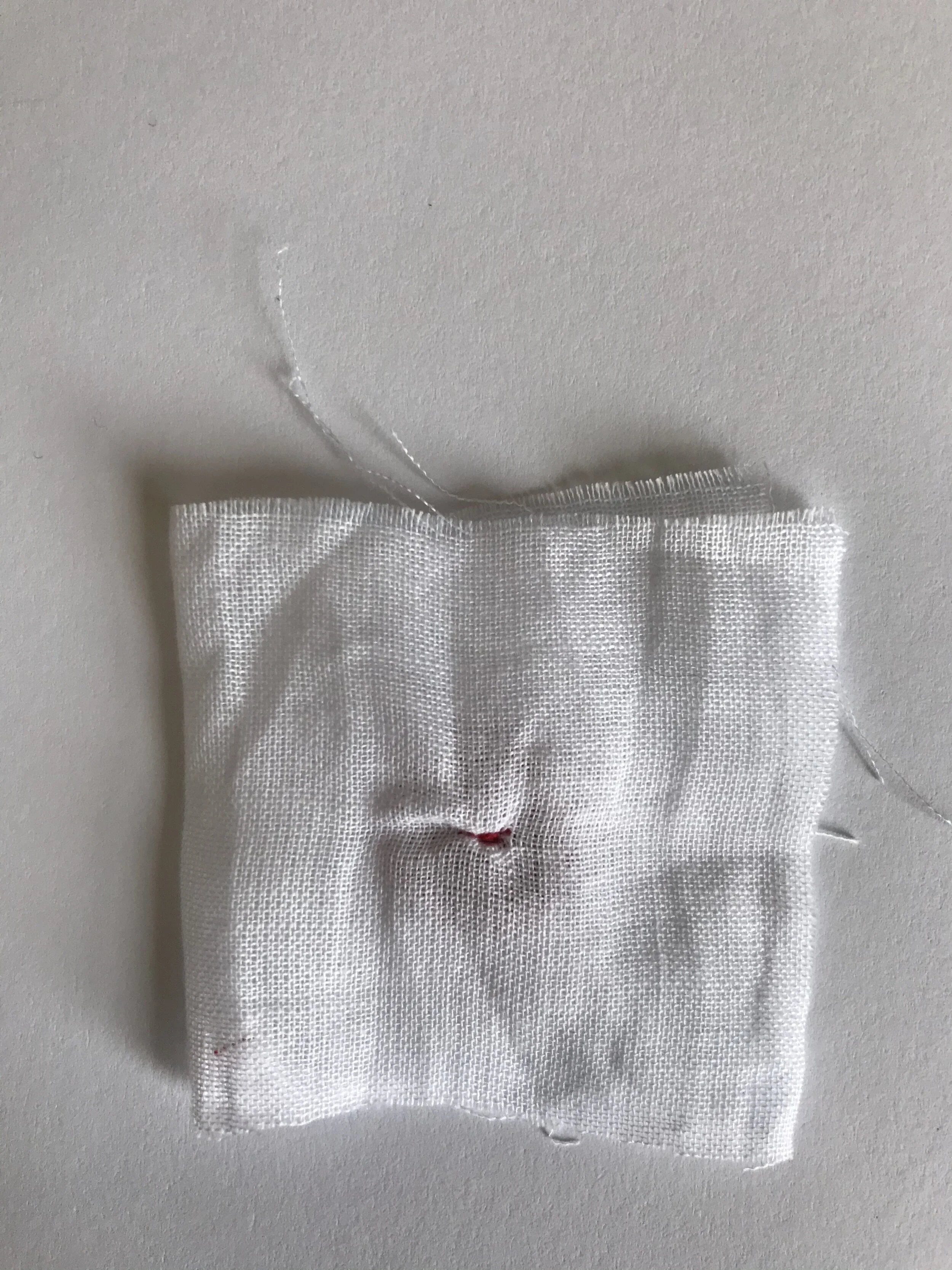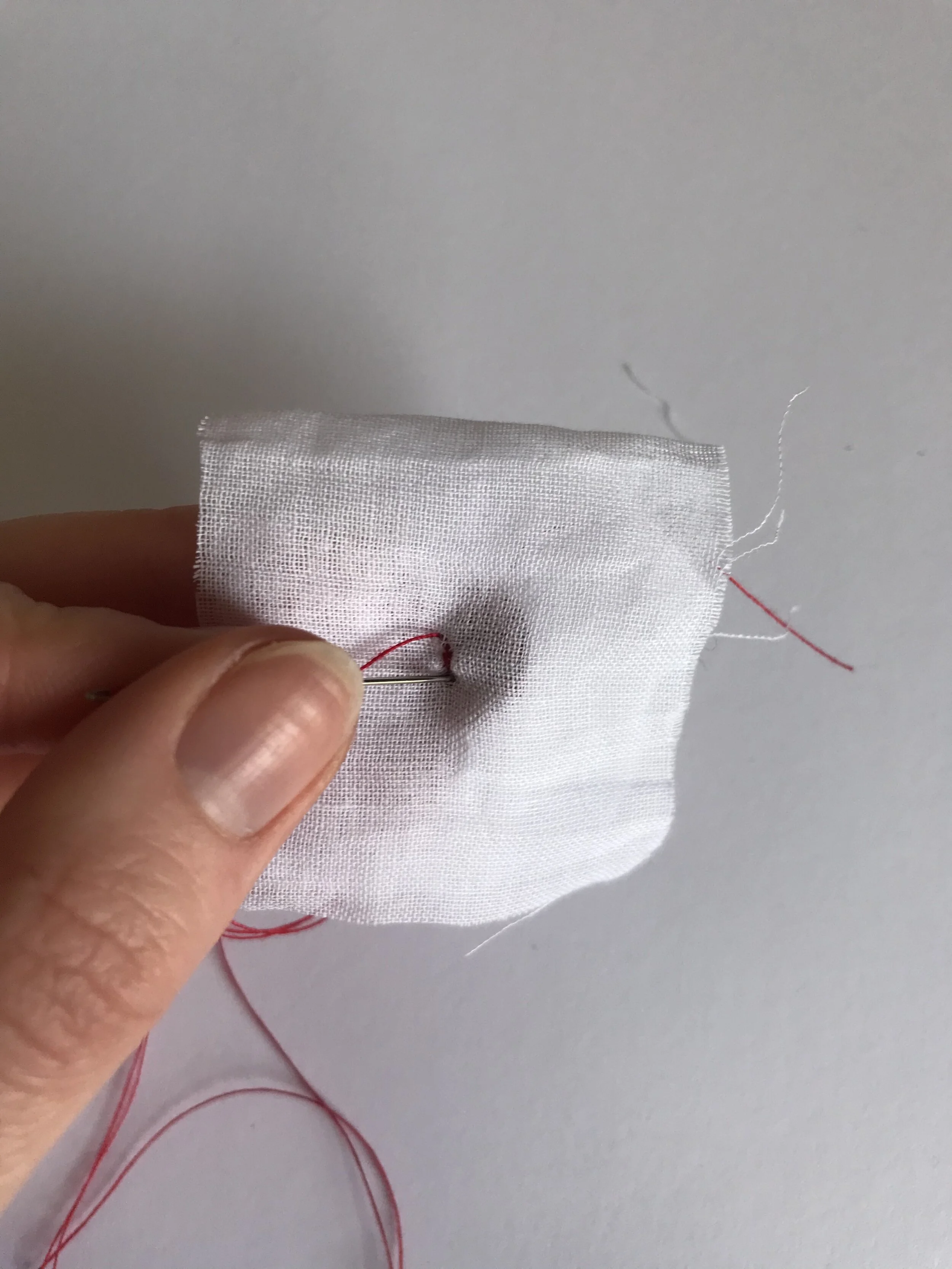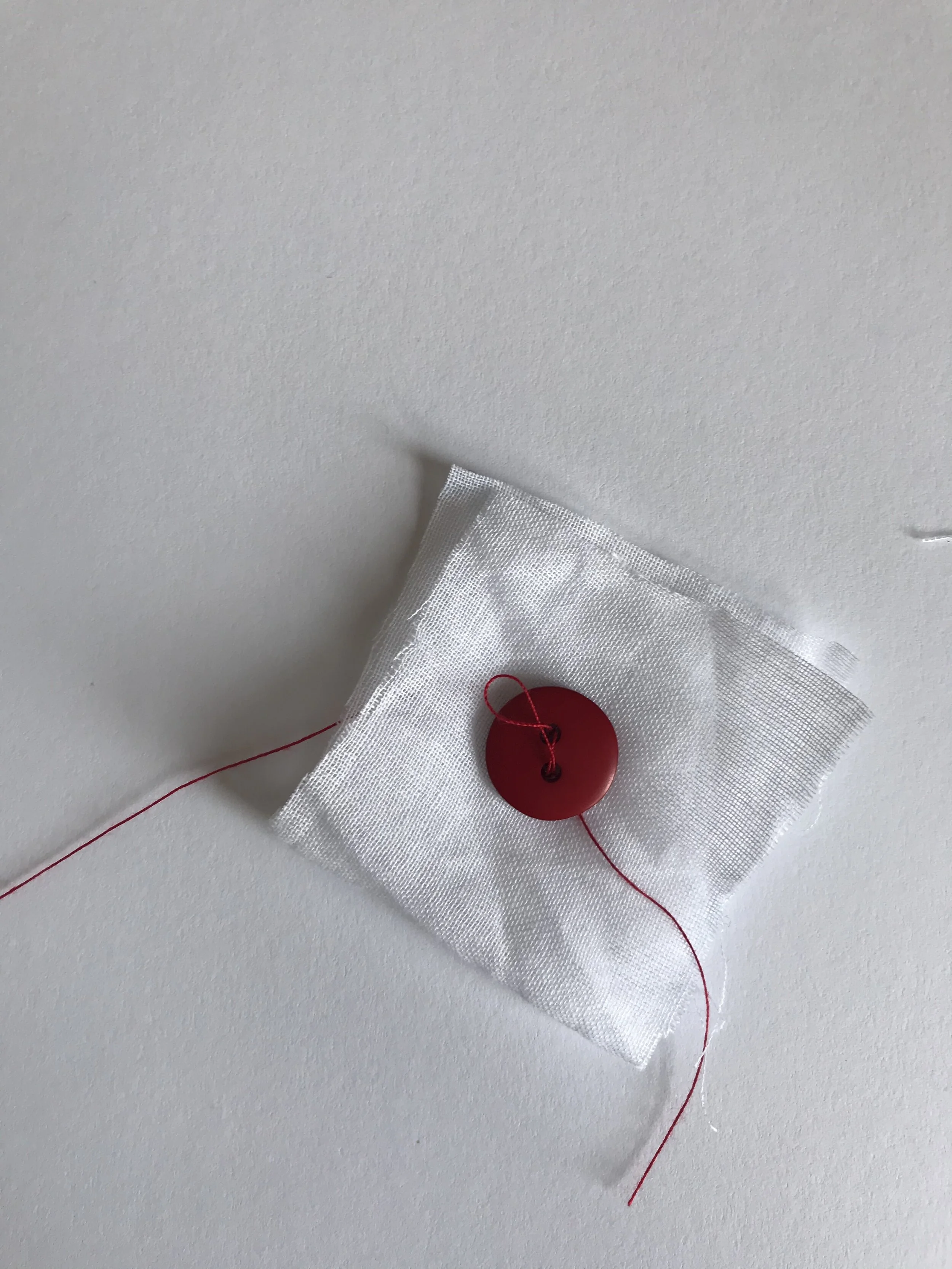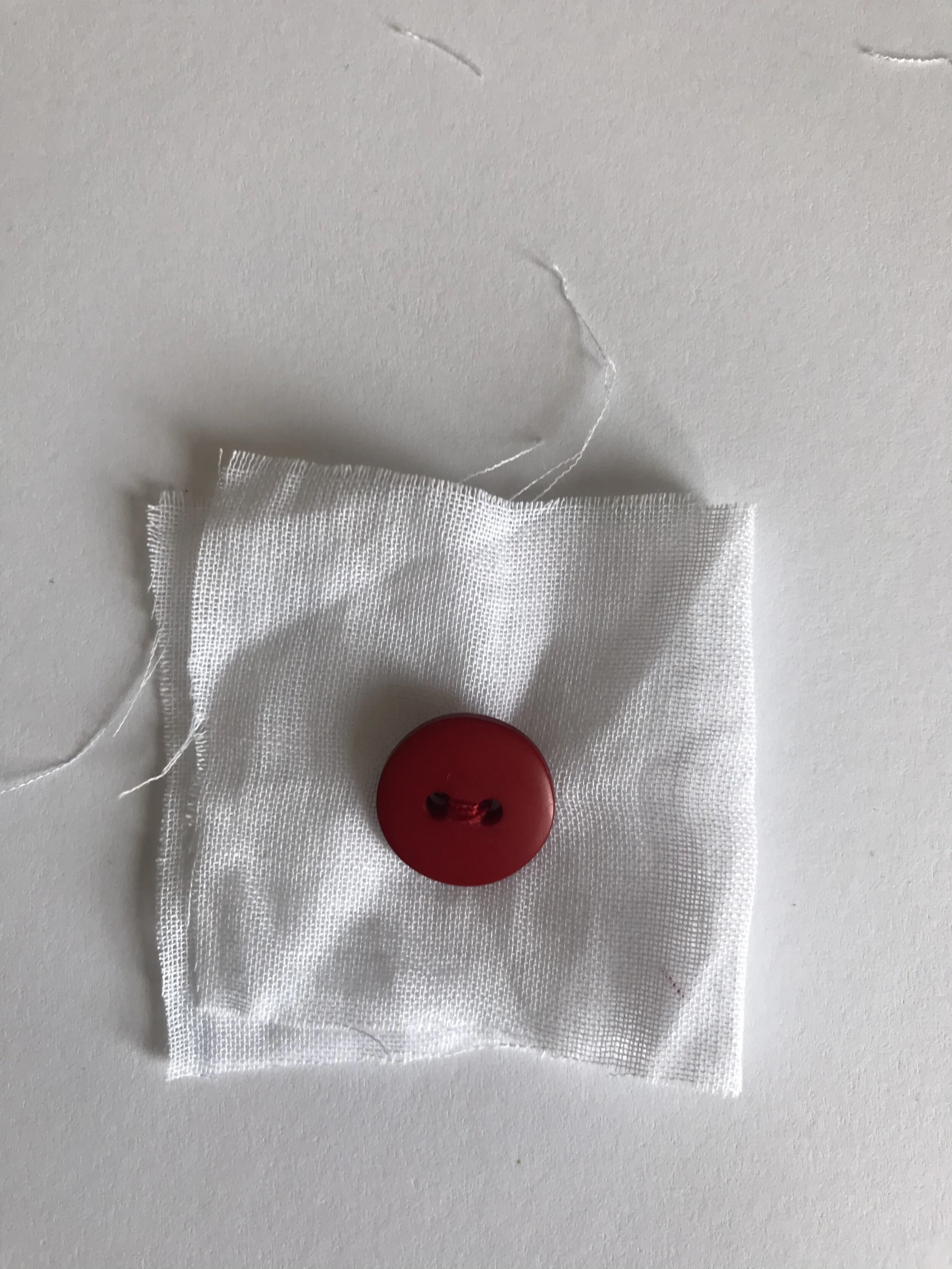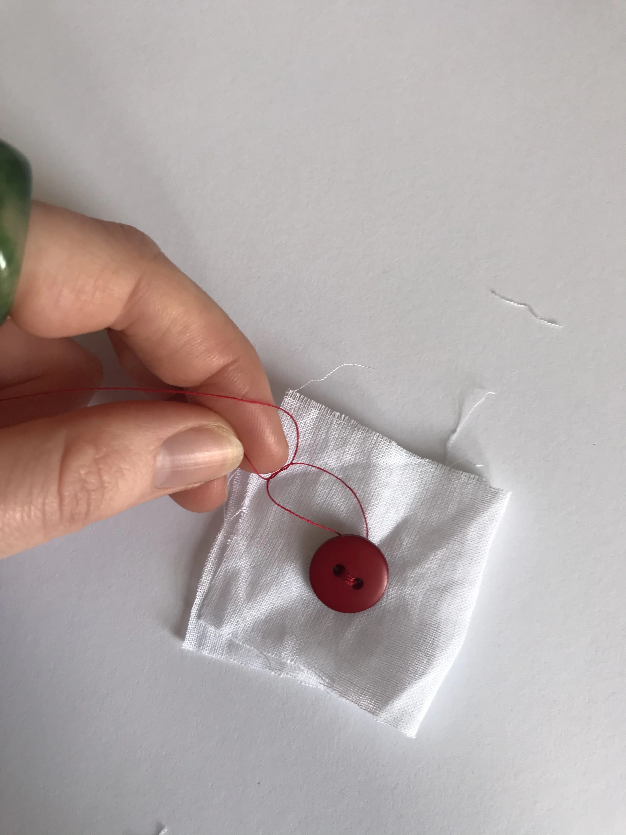 Grab your button and thread through both holes so that it sits flat against the fabric.